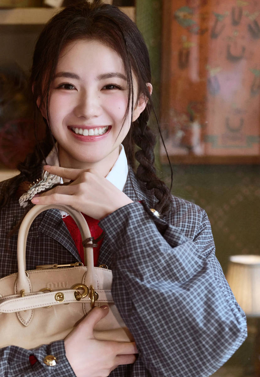 灰色格纹套装的复古感,为她的少女气质注入了层次感。刘浩存的气质偏清新灵动,若单纯搭配甜美元素,容易显得单薄,而灰色格纹的加入,恰好弥补了这一短板,为造型增添了复古优雅的质感,让少女感不再局限于“清甜”,多了几分沉稳与精致。格纹图案的经典耐看,与她干净纯粹的气质相契合,没有夸张的设计,却能凸显时尚品味,让整套造型在少女感中透着高级感。外套的直筒版型与短裙的灵动设计,既保持了造型的利落感,又不会压抑她的灵气,让气质与穿搭形成完美平衡。