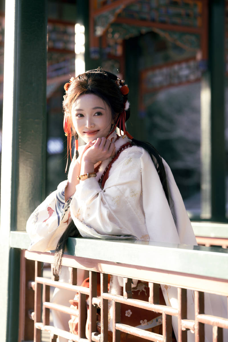 汉服造型的成功,是她风格蜕变的重要里程碑。与以往的国风尝试不同,此次马面裙写真更注重对传统美学的深度诠释,而非单纯的元素堆砌。她褪去了舞台上的甜酷气场,以温婉灵动的神态、端庄得体的动作,完美融入古典场景,将古典佳人的韵味演绎得十分到位。这种转变背后,是她对造型细节的精准把控与对文化内核的理解——提前了解马面裙的形制特点,学习古风仪态,让自己从外在造型到内在气质都贴合古典风格,这种专业态度让造型更具说服力。