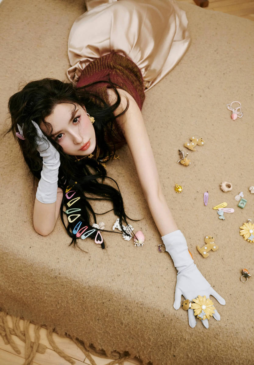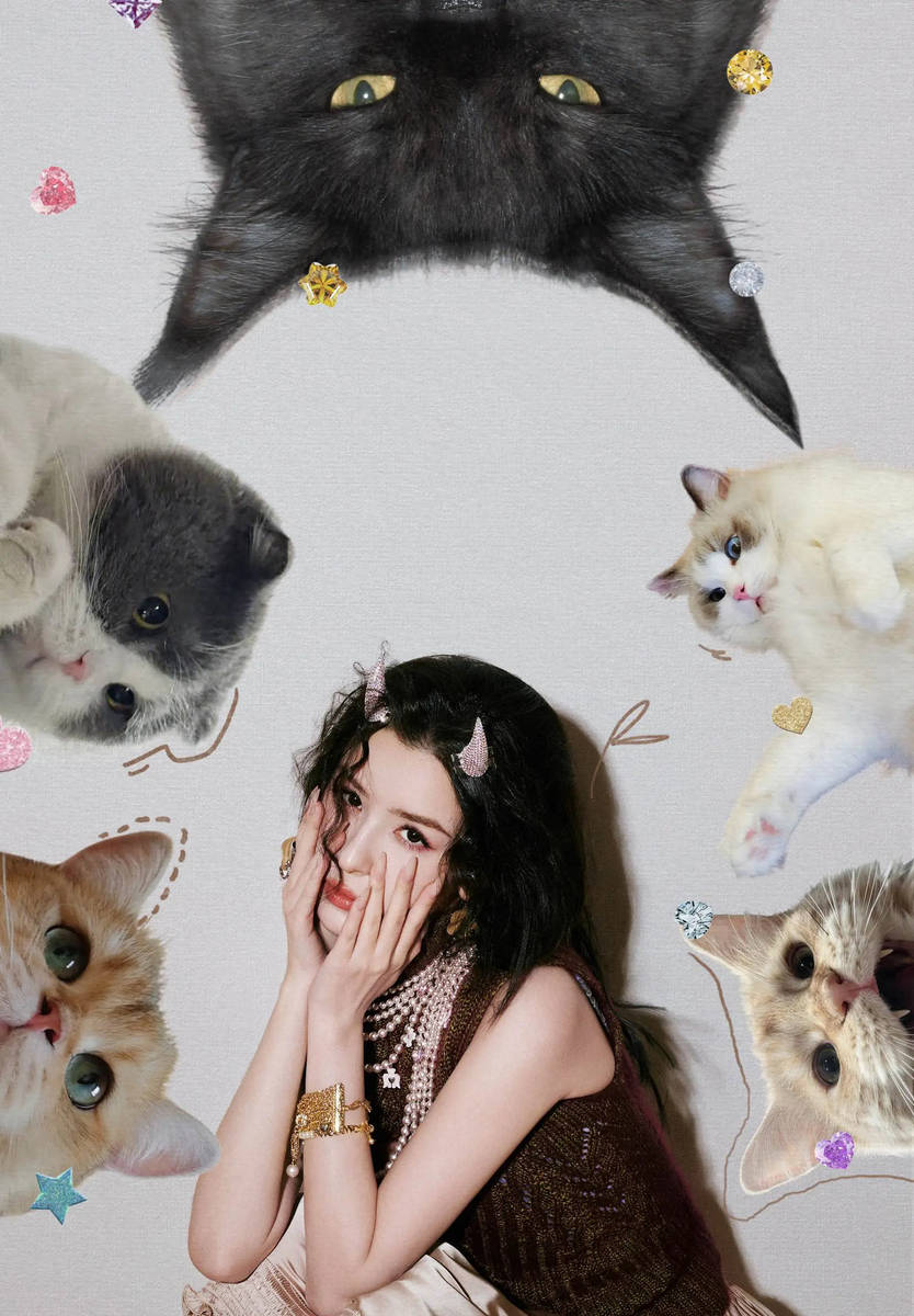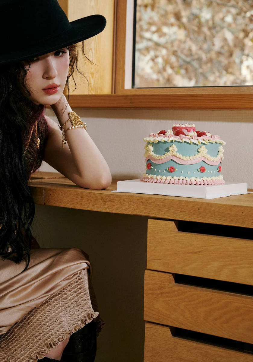 冷艳与慵懒的气质平衡,是她东方美学表达的核心。哈妮克孜的冷艳,并非刻意营造的凌厉,而是源于她高挺鼻梁、深邃眼眸的异域骨相,自带疏离感;而她的慵懒,则藏在自然卷发、松弛姿态与柔和服饰中,弱化了骨相的锋利,让气质变得温润而不刻板。生日写真中,棕色针织的柔和中和了缎面的清冷,卷发的随性化解了红唇的浓烈,这种“刚柔并济”的平衡,恰是东方美学中“中庸之道”的时尚诠释,既不刻意讨好,也不刻意疏离,在自然舒展中展现独特魅力。