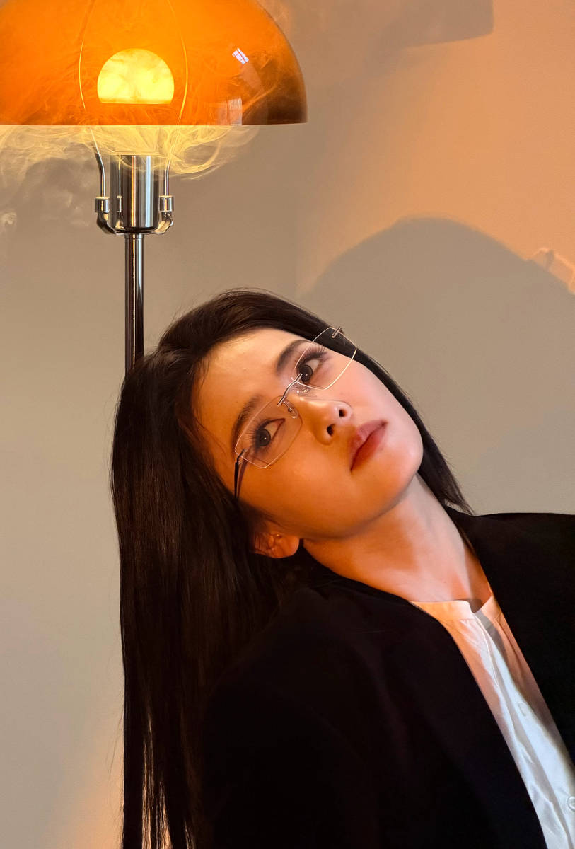 金丝边眼镜的搭配,是整个造型的灵魂所在,也是白鹿高智姐感的核心来源。细框金丝边眼镜自带精致与睿智的气质,搭配白鹿清冷的眼神,瞬间提升了整个造型的高智感,让她看起来沉稳干练,又不失温柔优雅。这种搭配没有丝毫的违和感,反而与黑色西装形成完美呼应,让酷飒与高智两种气质相互融合,形成了独属于白鹿的姐系风格。