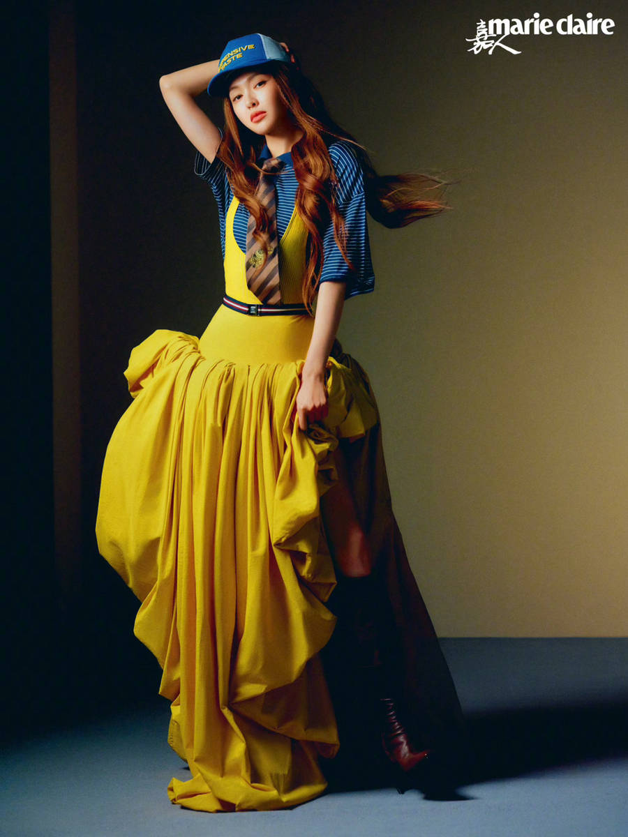 金发造型更是这组写真的点睛之笔。唐嫣的金发并非夸张的亮金色,而是柔和的浅金色,搭配自然的卷发纹理,蓬松柔软,随意垂落在肩头,衬得她的五官更加立体精致,眉眼间的飒爽感也被瞬间放大。以往唐嫣的造型多以黑色长发为主,温柔温婉,而这次的金发造型,无疑是一次大胆的尝试,却意外地契合她的气质,让她从“甜妹”成功转型为“甜飒女神”,反差感拉满,让人眼前一亮。