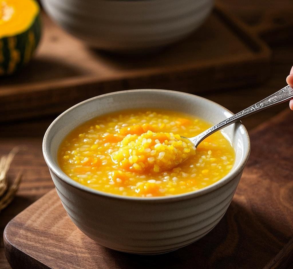 第四款是南瓜小米粥,健脾祛湿、补充营养,适合所有人群,尤其适合脾胃虚弱、消化不佳的人。南瓜性温味甘,能健脾祛湿、补充维生素,小米滋养脾胃,二者搭配,口感香甜,既能补充营养,又能促进消化,帮助身体排出湿气,改善面色暗沉、浮肿。制作时,小米提前浸泡,南瓜去皮切块,与小米一同熬煮,大火煮沸后转小火熬25分钟左右,至南瓜融化、粥体黏稠即可,无需额外调味,自带香甜口感。